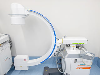 C字型アームでX線撮影角度を自在に変えられる透視装置です。